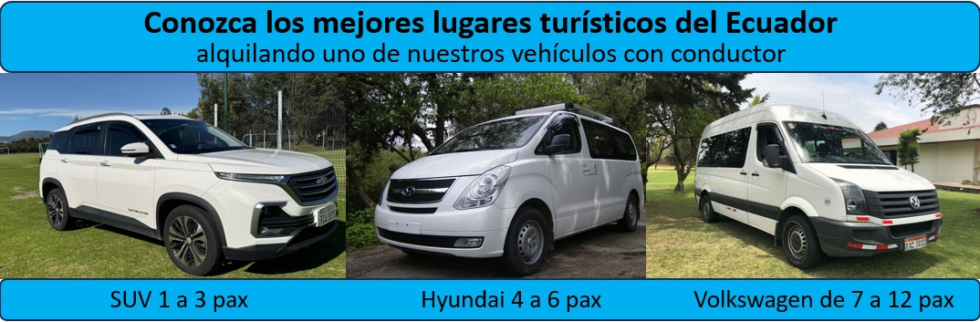 Al Alquilar uno de nuestros vehículos con conductor profesional, usted podrá viajar conociendo y disfrutando de los mejores lugares turísticos del Ecuador sin tener que preocuparse por conducir desde 1 día en adelante de acuerdo a su disponibilidad de tiempo e interés por conocer